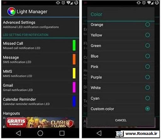LED، چراغ کوچکی است که معمولا در قسمت بالای گوشیها قرار دارد و به هنگام علائم هشداردهنده مانند دریافت تماسها، پیامها، اخبار و…، روشن میشود. چیزی که تاکنون نمیدانستید این است که اپلیکیشنی مخصوص مدیریت رنگ LED در زمان هشدارها، طراحی شده است.